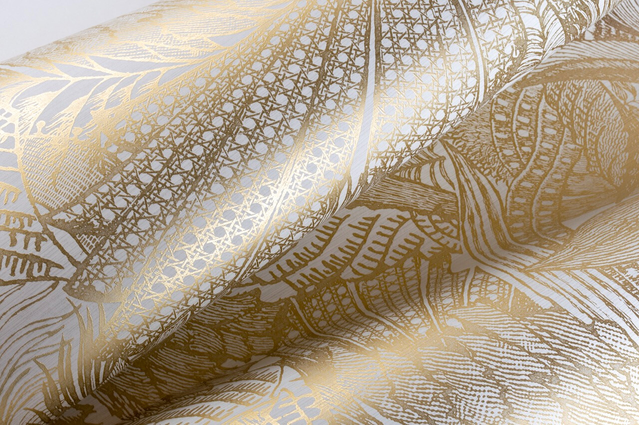 Symbiosis 共生之牆 - 由植物、羽毛和藤蔓共生形成的奇異景象,融合柔和、金屬調性及明顯光澤感,具備優雅、 神秘、妖嬈、異域風情,激發想像力,引人探索。共 4 種色調。