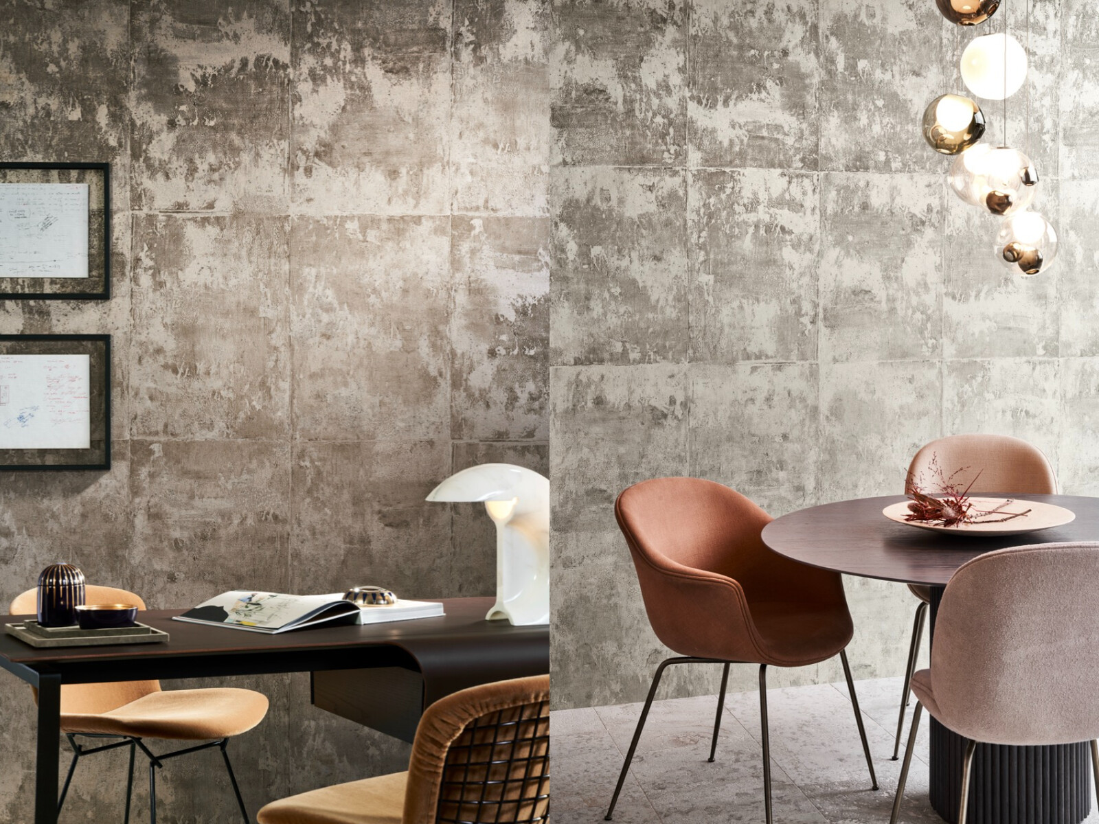 當人們談論牆面時,往往只想到色彩與圖案,卻忽略了那一層最貼近身體感受的存在 —— 觸感。「Icons 魅力巨星」系列正是從這樣的感知起點出發,重新思考牆面在空間中的角色。它不單純一味地宣告風格,也不追求視覺上的張揚舞爪,而是讓材質先發聲,讓光線慢慢落下,在日常行走與停留之間,悄然改變人與空間的關係。這是一個建立在「熟悉素材」之上的創新系列。鯊魚皮革般的細緻顆粒、柔軟絨毛的溫潤起伏、金屬表面歷經時間洗鍊後的微光,以及藤編纖維所編織出的自然節奏,這些原本存在於家具、飾件或工藝細節中的元素,被轉譯至牆面,形成一種低調卻深刻的空間語言。牆不再只是背景,而是成為情緒的容器。