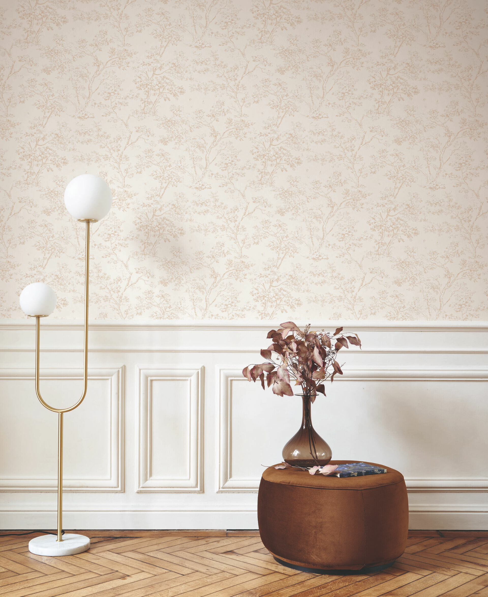 然而,當我們將這一系列應用於住宅或公共空間時,它並非只是壁紙與布料的佈置,更多的是一場浪漫情境的生活邀約。想像:晨光透過紗簾灑落,牆面貼著 Scène d'été 的清雅夏日場景圖,或是臥室中採用 Séraphin 的淡雅細紋配合布料 Célestine ,床頭牆面猶如優雅的藝術掛毯。若在客廳選用 Arbre 枝葉圖案配上 Gavotte 布料窗簾,室內蔓延著森林般的寧靜與律動。在餐廳、玄關或書房亦可採 Rayure 條紋作為視覺節奏分野,家具與材質呼應著條紋重覆的節拍。這樣的設計,讓人於生活中,每一步都像走入一幅優雅的法國印花畫卷。而無紡布材質亦承諾了實用性:容易施工、易於維護,更適合當代的快節奏生活。在這樣的空間裡,歷史與當下並置,古典圖語與日常融為一體。