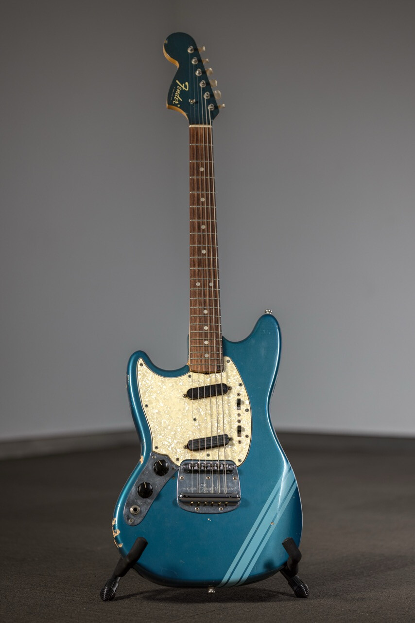 科特·柯本(Kurt Cobain)1966 年的 Fender Mustang 吉他,曾用於錄製 Nirvana 的專輯《Nevermind》和《In Utero》,並在他們的時代頌歌《Smells Like Teen Spirit》的音樂錄影帶中出現(估價:250 萬至 500 萬美元)