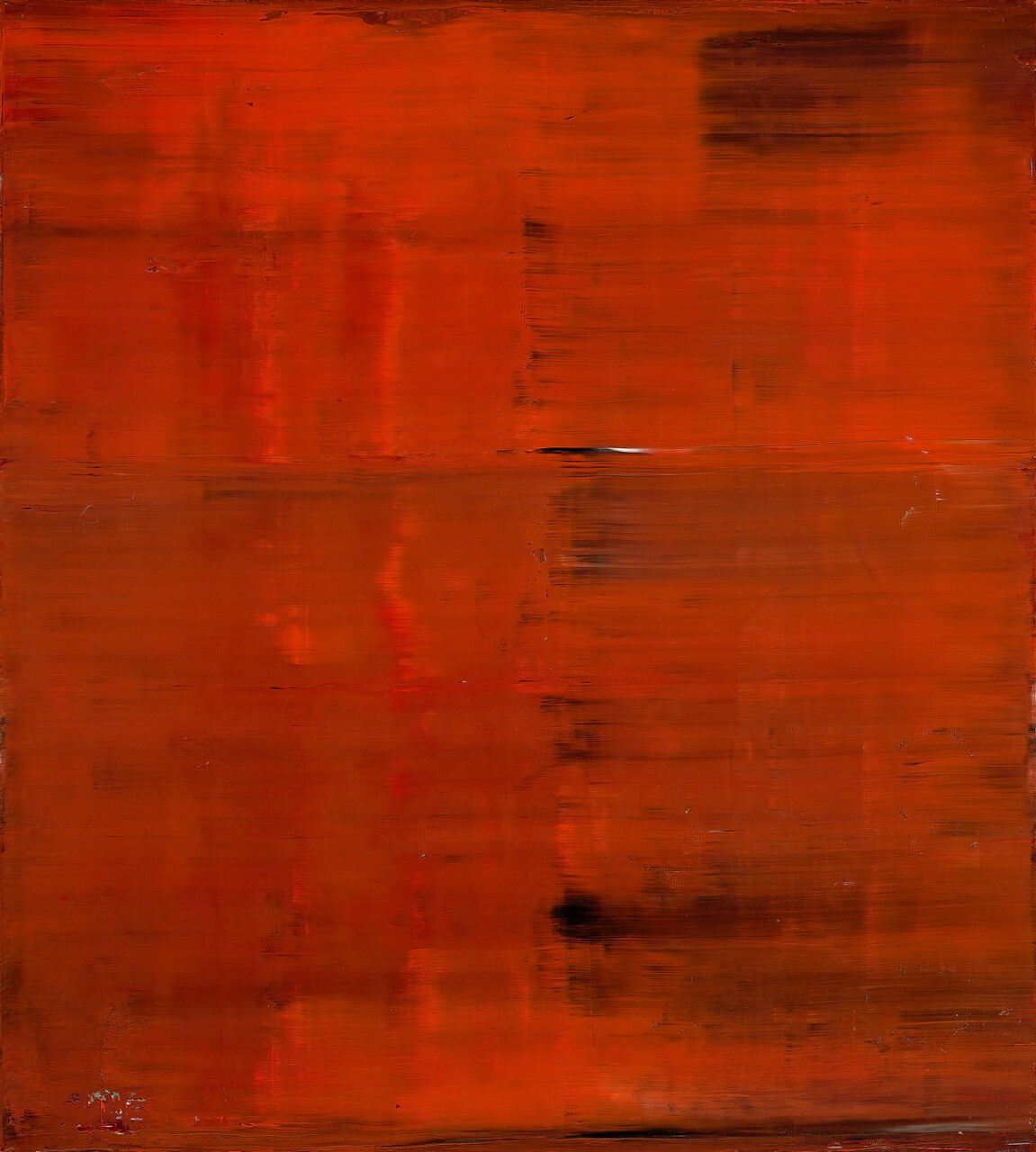 當紅色鋪展於畫布之上,它不再只是顏色,而成為觀看的入口。傑哈德・李希特(Gerhard Richter)於 1991 年完成的《抽象畫》,正是在這樣的觀看狀態中誕生。畫面中層層堆疊的油彩,經由刮板反覆推移、覆蓋、刮除,留下難以預測的痕跡,既顯示出創作者的控制意志,也保留了偶然生成的開放性。這種張力,使作品在第一眼便釋放出強烈的情緒密度,卻又拒絕被簡單解讀。作為二十世紀末最具影響力的藝術家之一,李希特始終遊走於具象與抽象、記憶與抹除之間。《抽象畫》系列並非逃離現實,而是一種更為深層的回應方式,讓觀看者在無敘事指引的狀態下,直面自身的感受與投射。