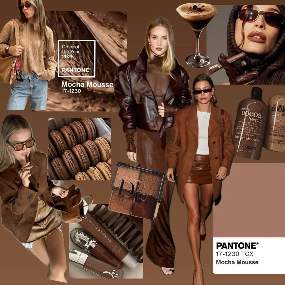 如同甜點本身焦糖外殼與柔軟內餡的對比,穿搭上以摩卡慕斯棕為「外殼」,搭配各種「內餡」柔彩色系。