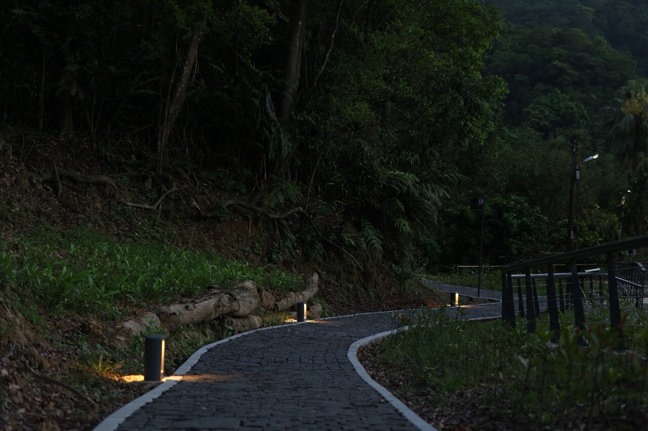 鄰近平溪火車站的「深坑石碇平溪微笑山線」是今年最具自然色彩的入圍者。這條淺山步道以生態工法建置,保留山林的原貌與呼吸,並塑造螢火蟲友善棲地。夜晚,僅有單側矮燈微亮,如行走於森林中的一條光之細線,3000K 以下的橘紅色光源柔和而內斂,避免干擾生物,像是替山林保留其夜的寧靜。在這裡,光不是征服,而是陪伴;不是主角,而是背景。螢火蟲與天燈彼此輝映的畫面,彷彿讓地方記憶有了新的生命。於步道上行走,仿佛是在光影交錯的森林詩篇之中閱讀自然本身。