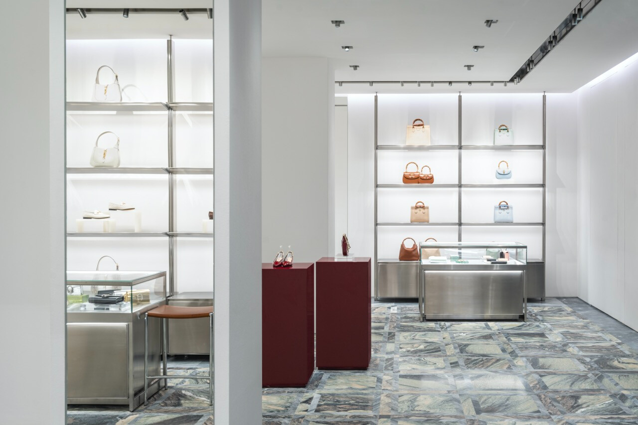 地板採用 Cipollino 和 Bardiglio 大理石,形成錯綜複雜而美麗的幾何圖案,讓人聯想到米蘭最具代表性建築中所運用的元素。店內將威尼斯「pulegoso」玻璃設置於陳列架和其他精巧的細節上,可窺見品牌對義大利傳統藝術文化獻上更崇高的敬意。店內精心擺放著來自 Cassina、B&B、Living Divani 和 Minotti 等義大利設計代表性品牌的扶手椅、沙發和桌子,無論賓客來自全球何處,都能產生心領神會的共鳴,這樣的理念與創意總監 Sabato De Sarno 所開創的義式美學完美契合。