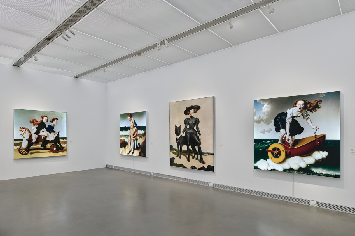 英國藝術家馮.沃爾夫(Von Wolfe)畫筆下女性形象堅毅泰然,兼具古典主義的優雅與當代的戲劇性。圖中作品左為〈沙漠之珠〉,右為〈泰然自若〉。Photo by Studio Millspace