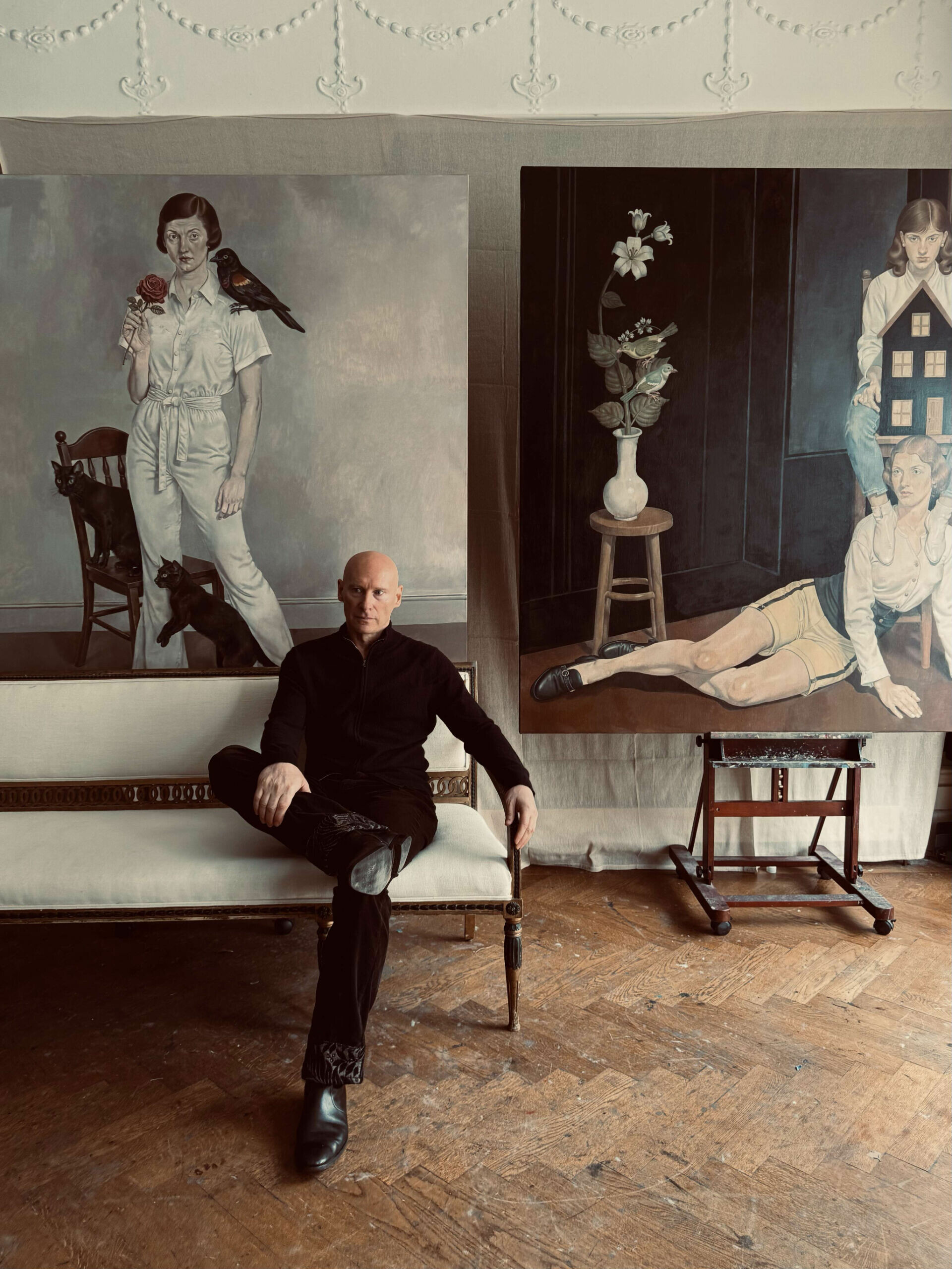 馮.沃爾夫生於藝術世家,現居倫敦,並受過完整而嚴謹的哲學訓練。他將藝術視為思辨的延伸與實踐,其創作橫跨三十餘年,融合油畫、古典圖像學、現代主義語言與當代科技,形成兼具文化深度與實驗精神的獨特風格。