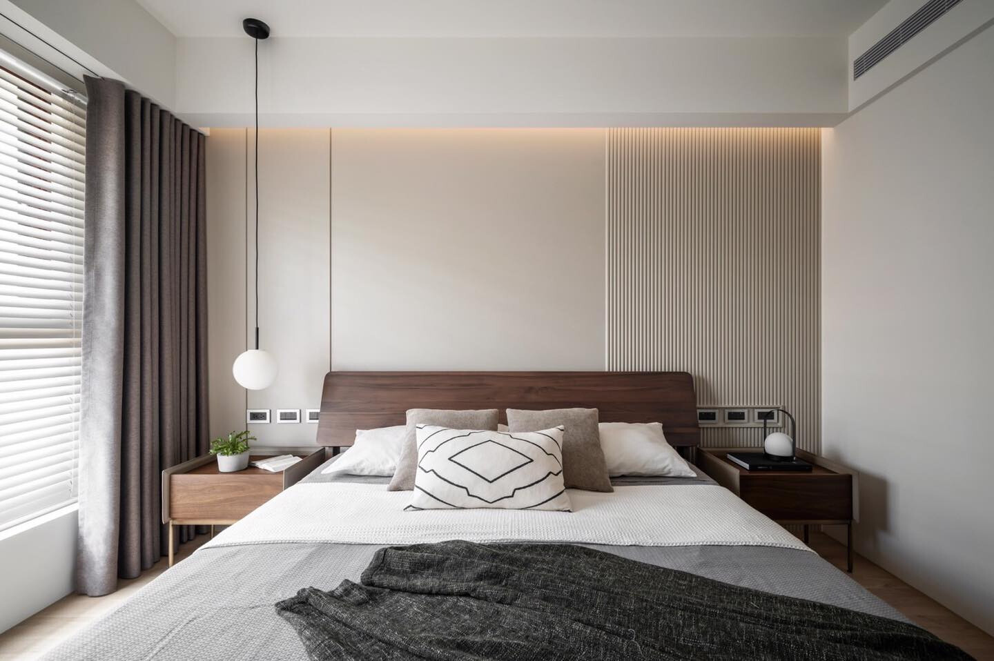 然而,真正動人的設計,往往來自對「少」的理解。當視覺負擔被卸下,感官便開始甦醒。光線在窗簾後方緩緩流動,牆面與地坪成為情緒的延伸,空間不再要求被觀看,而是被感受。設計在此不急於表態,而選擇退後一步,讓生活本身成為主角。居住者得以在這樣的背景中,找到屬於自己的節奏。無論是閱讀、休息或靜坐片刻,空間都以一種溫柔而克制的方式陪伴。於繁華之外,留下一方澄淨之所,使人得以回望自身,安放精神,讓日常回歸最本質的狀態。