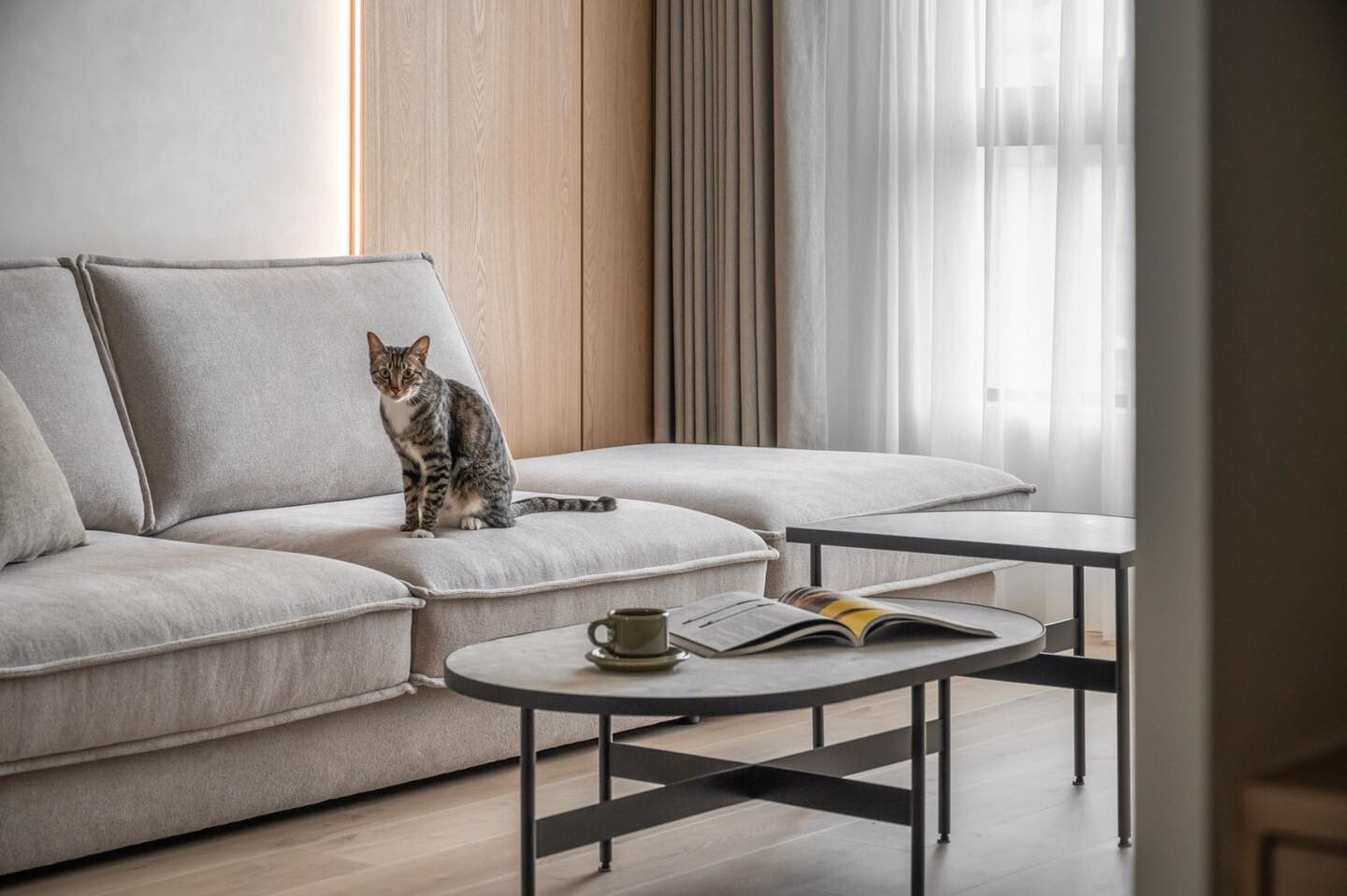 最終,設計的終點,從來不是完成,而是開始。當光線被溫柔接住,當白色成為安心的背景,空間便不再需要過多言語。它靜靜地存在,等待生活在其中發生、堆疊、沉澱。這是一種不喧嘩的美,一種能與時間共處的狀態,讓人願意在日常之中,反覆回到這片光之所棲、白之所安的所在。於此,窗簾不只是界定內外的介面,更像是一層溫柔的節奏調節器,讓日光緩慢行走,讓心緒得以安放。空間因此不追逐瞬間的驚艷,而選擇與居住者一同老去,在歲月之中,累積屬於生活本身的深度與溫度。