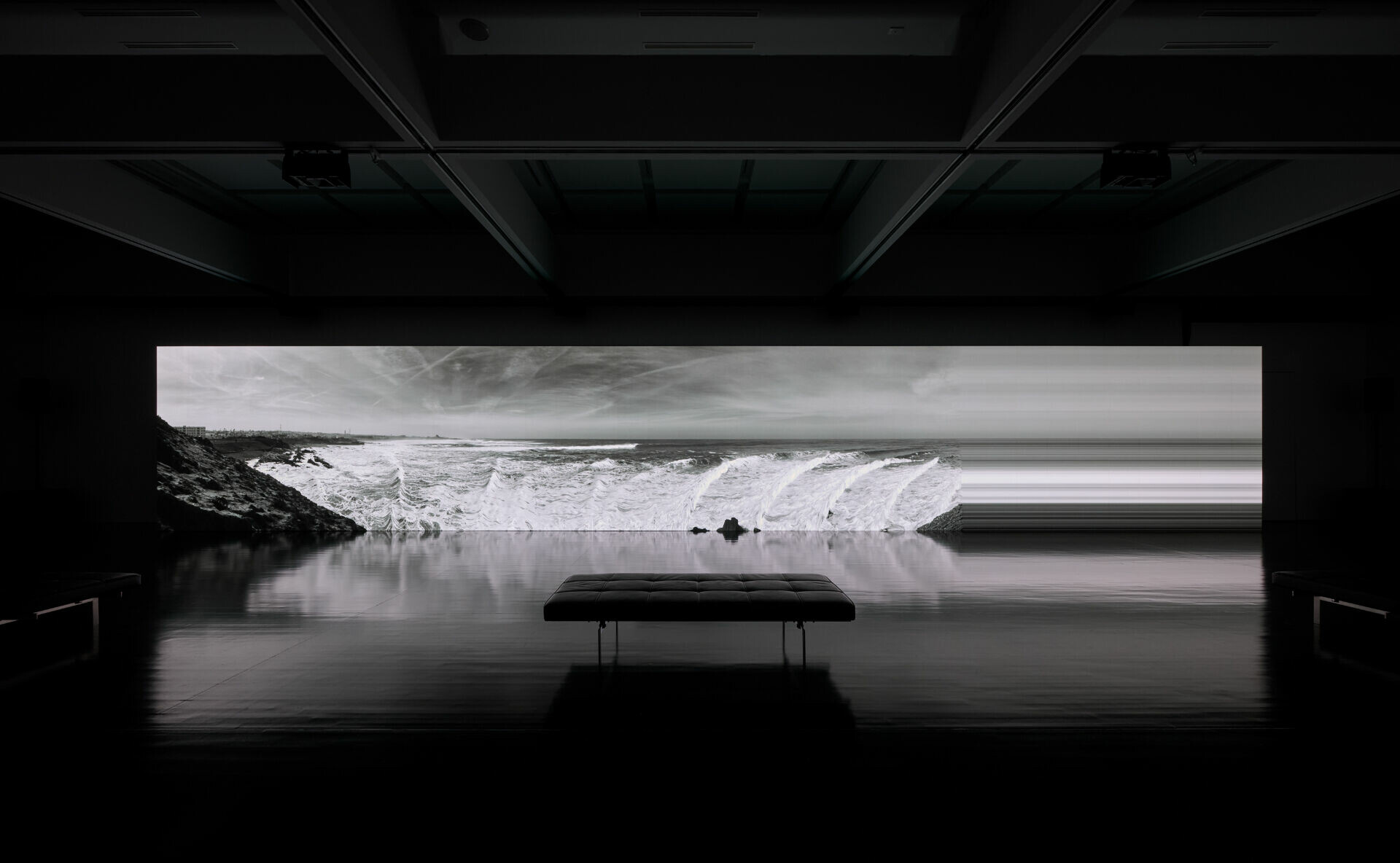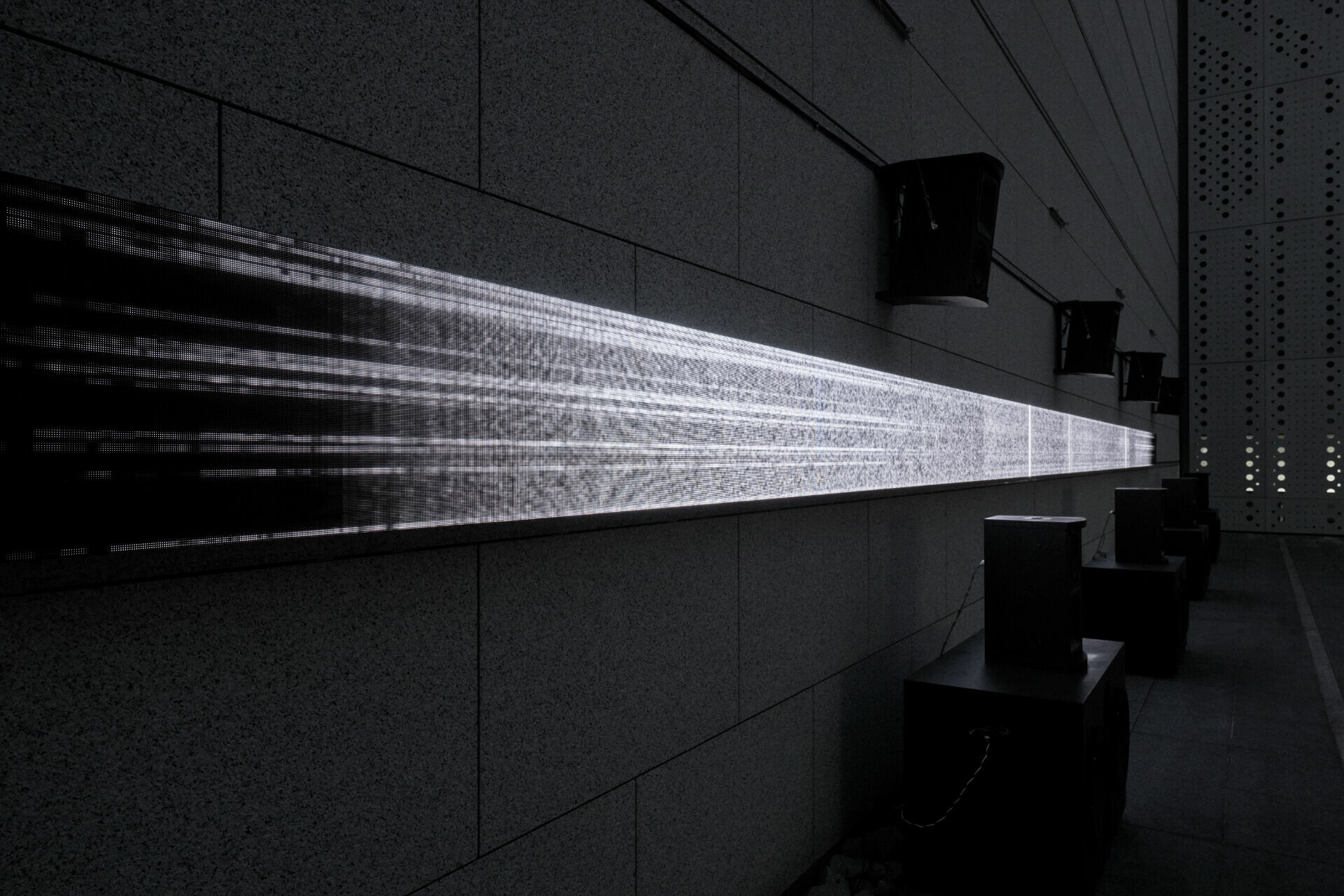 坂本龍一的一生橫跨流行、實驗、電影配樂與當代藝術,而他晚年的創作,愈發遠離「音樂作品」的既定形式,轉而成為一種關於存在的感知裝置。這樣的創作姿態,使他不再只是作曲家,而成為一位以聲音思考時間的藝術家。在展覽現場,坂本龍一與長年合作夥伴高谷史郎共同完成的《async–immersion》,成為展覽的核心。