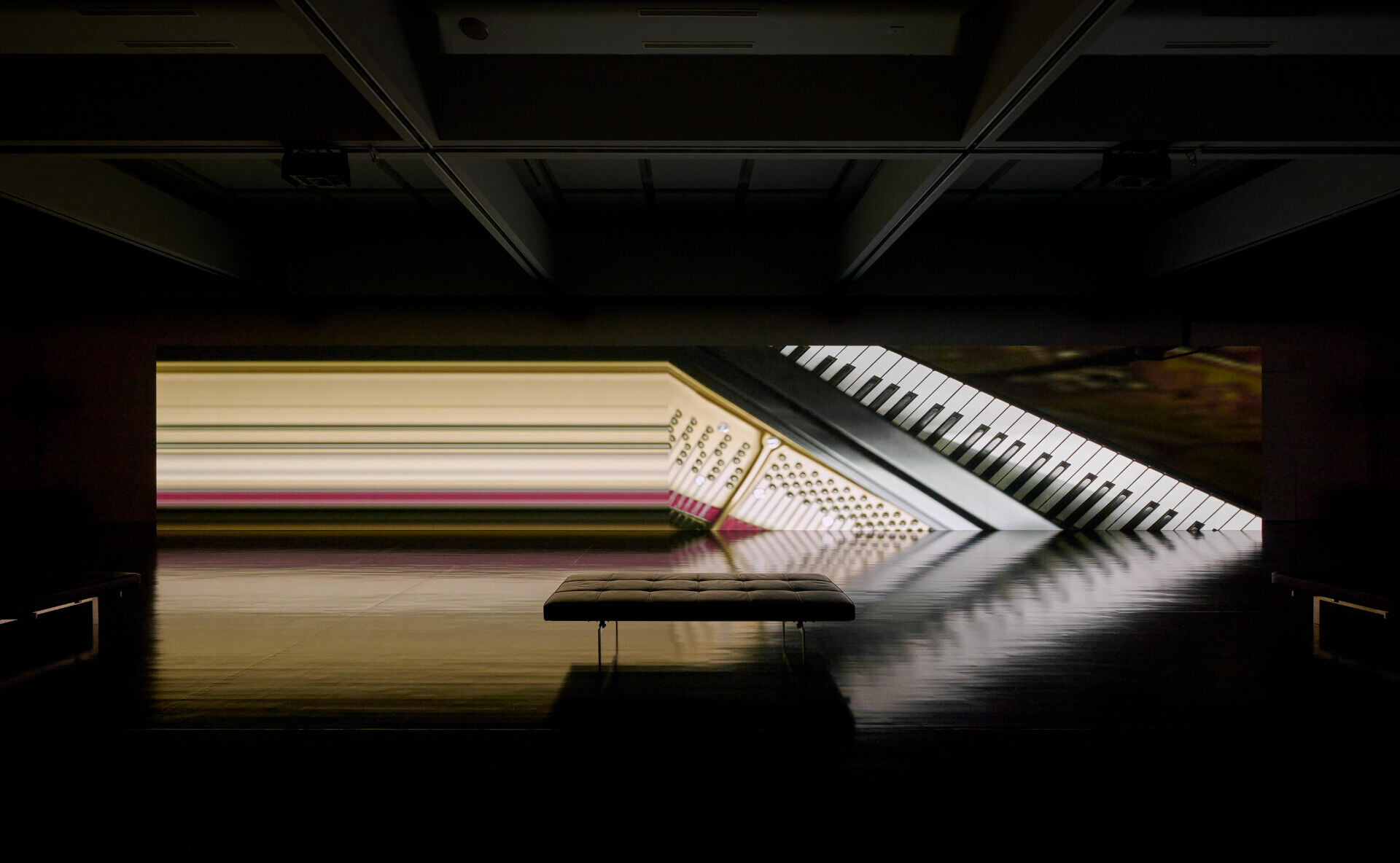 這件作品並不要求觀眾「坐下來聽」,而是邀請人們在空間中行走,讓聲音以三維方式包圍身體。音樂不再是時間的背景,而成為空間本身。再者,影像並未同步於聲音,而是如另一條時間軸般獨立流動。像素化的影像來自坂本工作室中的樂器、植物與書籍,它們一一解構、重組,彷彿記憶在時間中逐漸模糊,又忽然清晰。這種不同步,正是坂本晚年對「時間感」最深刻的回應——生命從不按照我們預期的節拍前進。