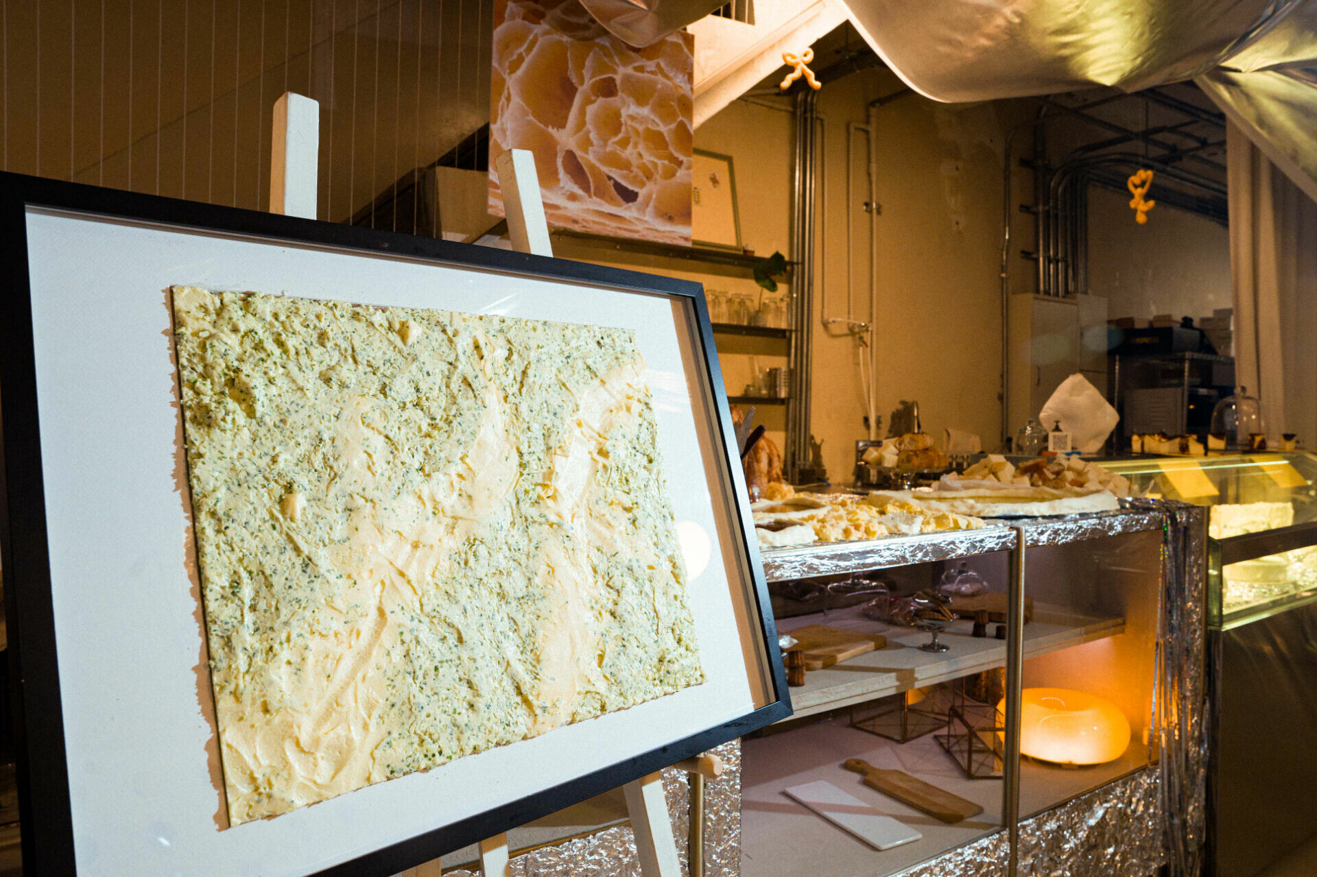 NIX 月球背面派對的沈浸室小水池區以畫家刮刀在一幅有如抽象大師波洛克畫作的香料奶油上恣意揮灑,並抹在法國麵包上,並一口吃下自己創作的「藝術品」