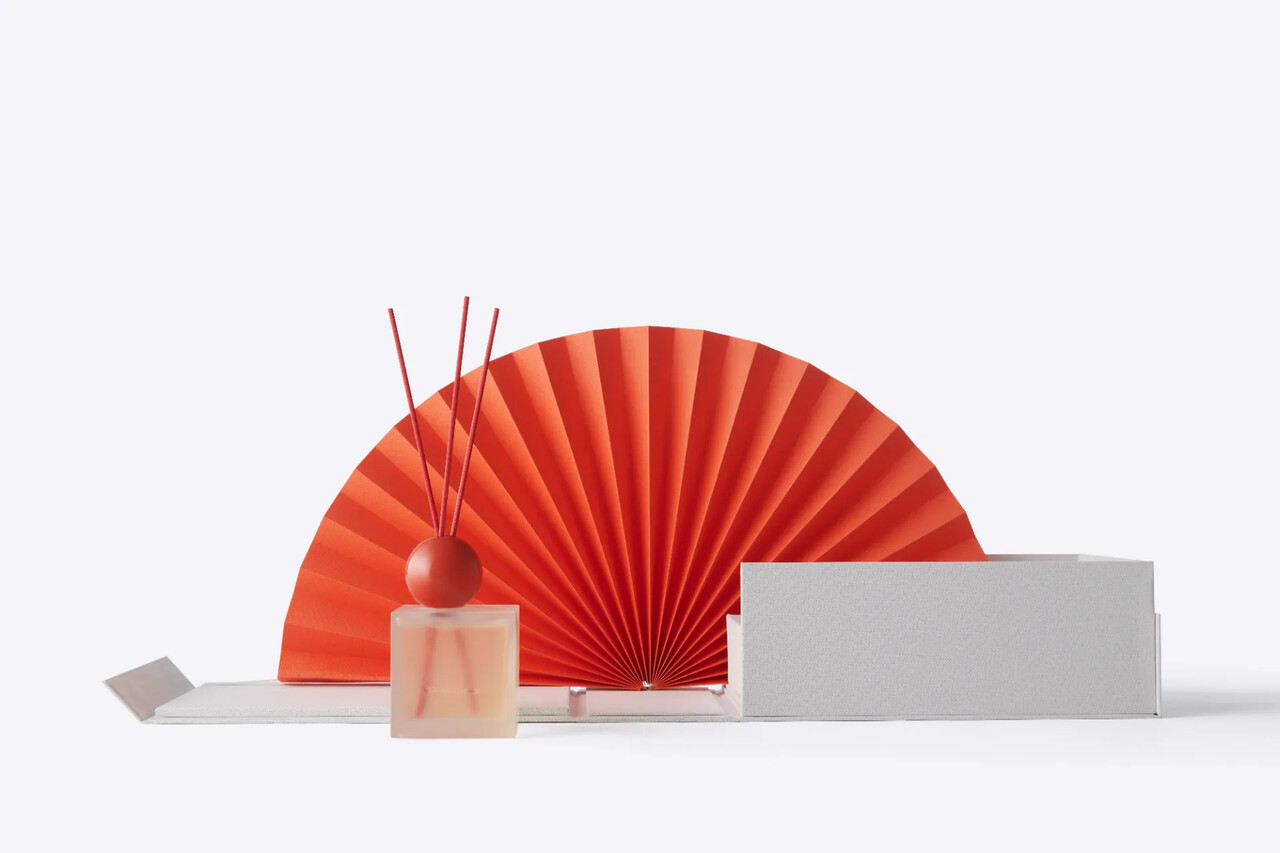 串聯空間與感官的美好想望,擅長交融匠藝精工的生活設計品牌 SHANG XIA 上下,今年 2023 七夕特別推出全新精油香氛擴香禮盒,整體設計汲取自幾何線條的極簡元素、加上色階應用的抽象概念,在嗅覺與視覺世界中探索嶄新可能。打開包裝外盒,便可輕展呈現摺扇形體,極具非凡東方意趣。