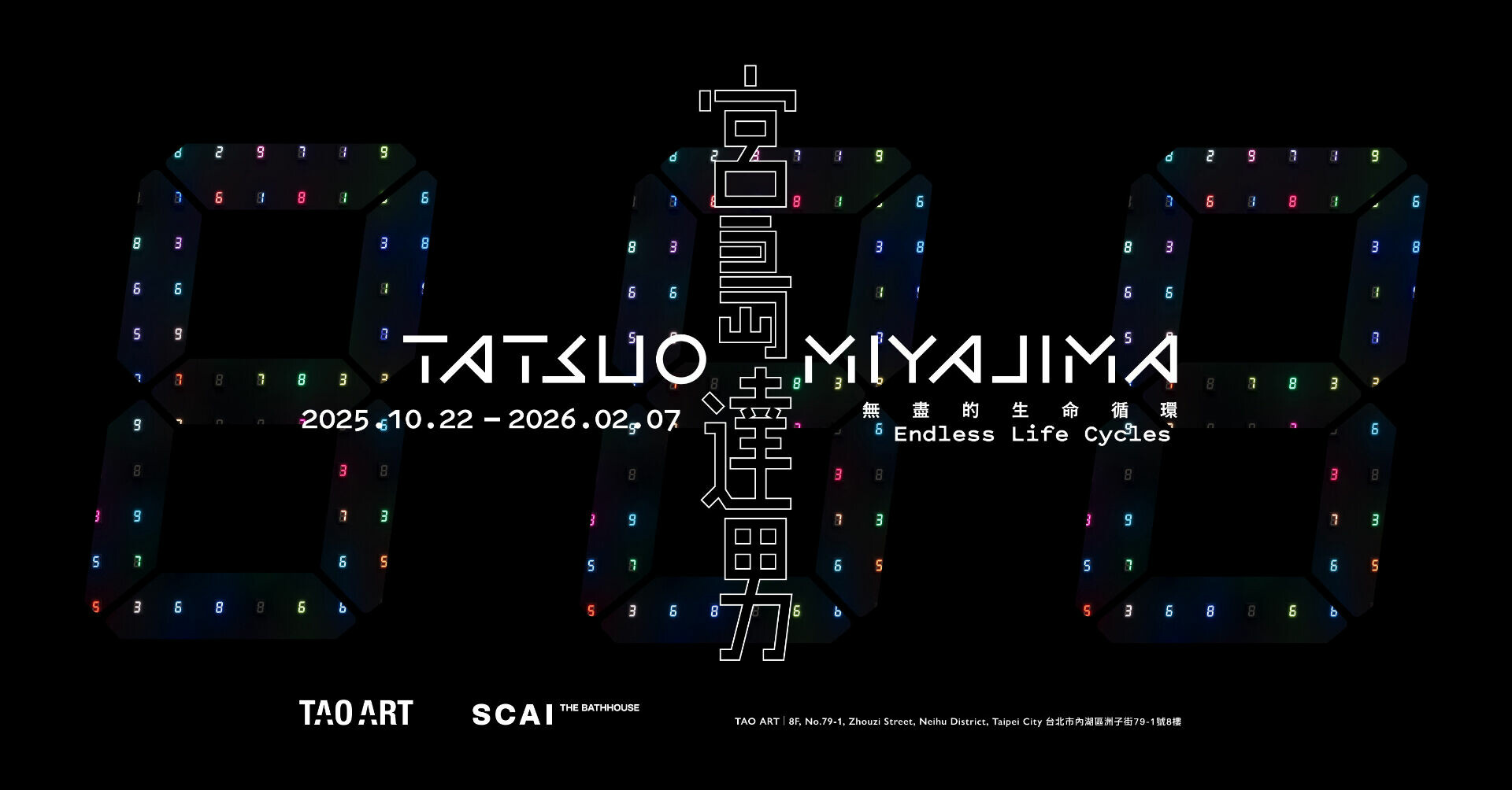 在內湖的 TAO ART 展間裡,數字閃爍如呼吸般律動。日本殿堂級當代藝術家宮島達男的《無盡的生命循環(Endless Life Cycles)》不只是展覽,更像是一場冥想。LED 的明滅不斷重複,數列在 1 與 9 之間循環,卻永不觸及「0」──那片空白,是生命的終點,也是重生的起點。自 1980 年代起,宮島以科技為筆,描繪時間的靈魂。他的數字不僅是冷光的符號,更是關於「存在」的哲學語言。《MEGA DEATH》的藍光曾在威尼斯雙年展上集體熄滅,令全場陷入黑暗,也讓人直視死亡的瞬間。而在《360個生命》中,數字的色彩如星辰閃爍,各以不同節奏脈動,象徵著地球上無數生命的呼吸。