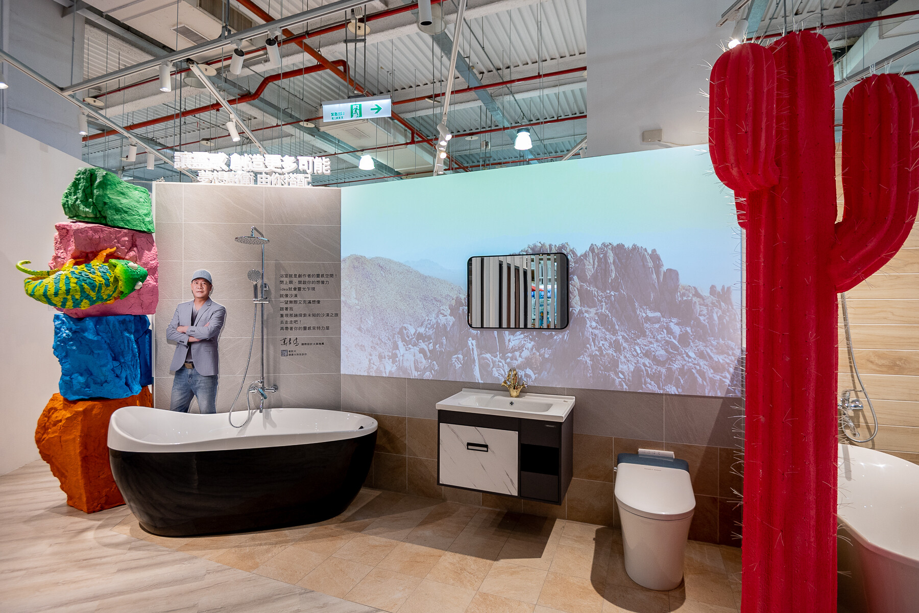 蕭青陽大俠於特力屋打造「亞利桑那之旅」衛浴空間,黑白色的浴缸就像一隻橫臥在沙漠中的鯨魚,完美演繹天馬行空的創意。