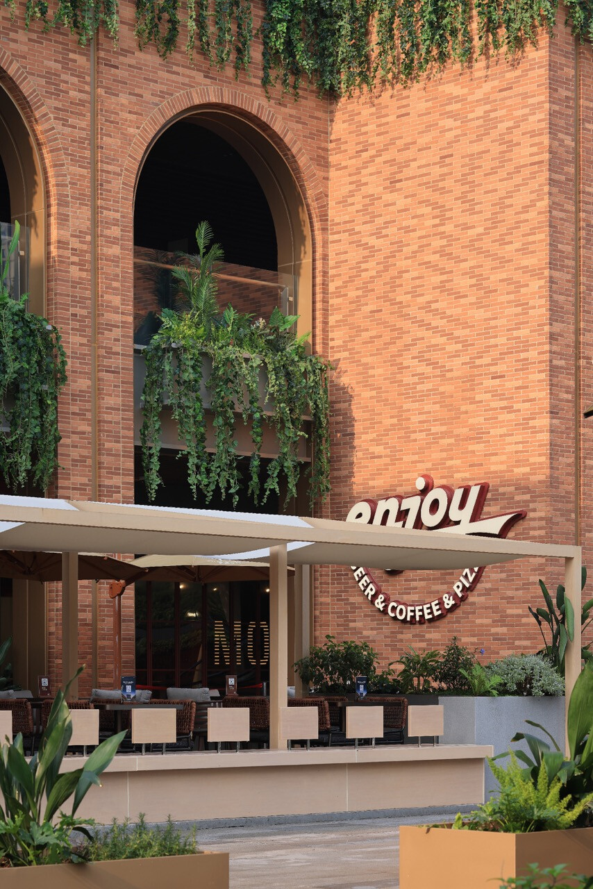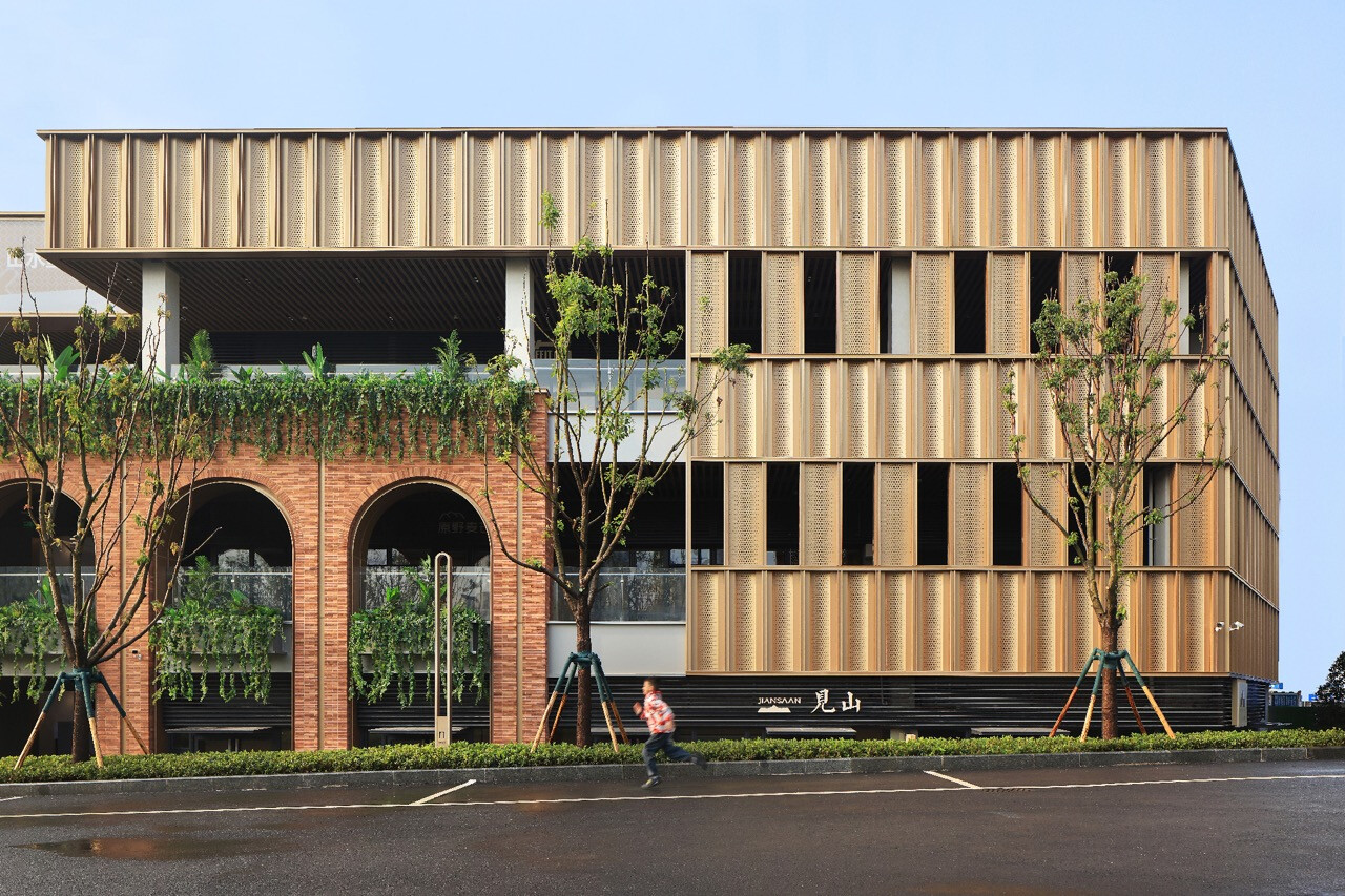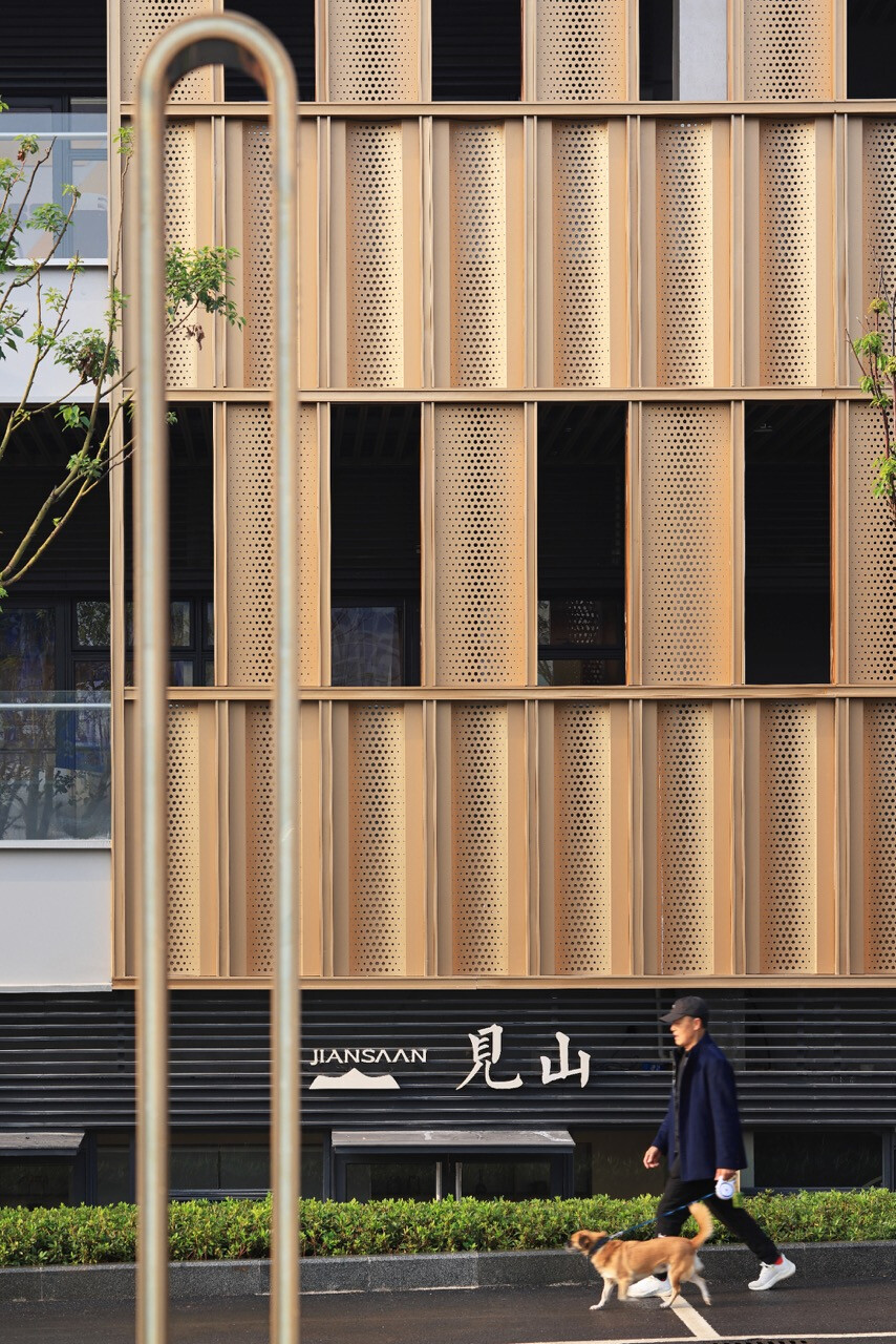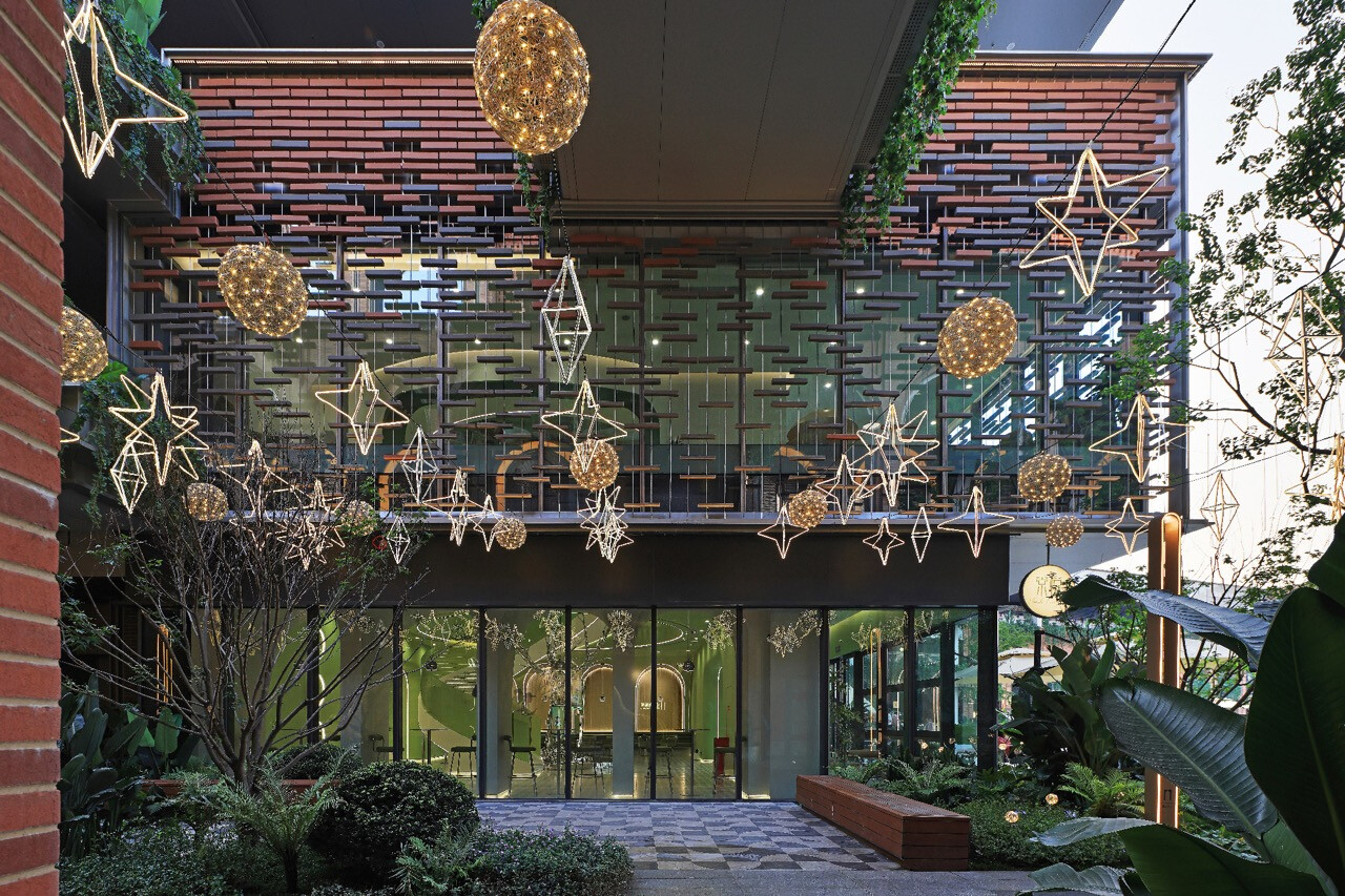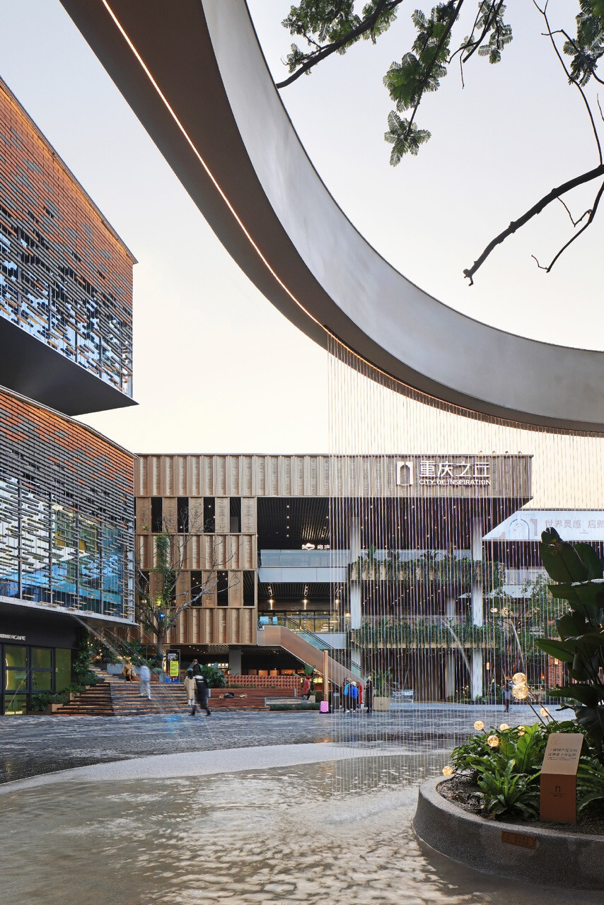 山水縱橫的重慶,總是以坡地延伸出生活的層次感。當「重慶之丘」於悅來海派美學生活街區誕生,它不只是建築的一隅,更是一場以記憶為線索的文化復興。宇合光年深入這座城市的歷史脈絡,以“寓舊於新”的設計語彙,把海派的精緻與重慶的厚度交織成新的城市語言。紅磚的肌理,映照著舊時碼頭的煙火;玻璃與金屬的光澤,則折射出現代城市的節奏。設計師不追求單一的形式,而是讓材質之間的對話成為一種時代的共鳴。沿街外牆的拱形與金屬網交錯,若隱若現,如霧中山影,既延續建築原貌,又注入當代精神。