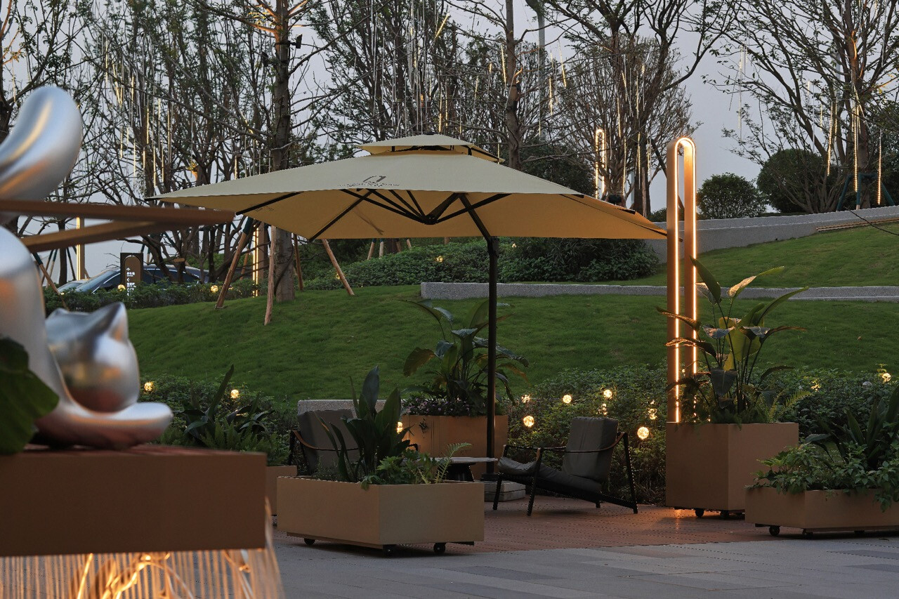 當夜幕降臨,重慶之丘化身為一座閃耀的「靈感之城」。燈光的設計不僅為了照明,更是情緒的描繪。天幕燈、氛圍燈、樹掛燈交織出多層次的光影節奏,如同城市心臟的脈搏。設計團隊以人為本,讓燈光成為社區的語言。無論是草叢間的微光,或座椅旁的暖燈,都像是一種溫柔的召喚。柔和的光線不僅營造出溫馨氛圍,也讓行人感受到被城市擁抱的安全感。這裡的每一盞燈,都在述說著人與空間的關係。光與影的交錯,是生活的韻律;而社區的凝聚,正從這樣的細節開始蔓延。