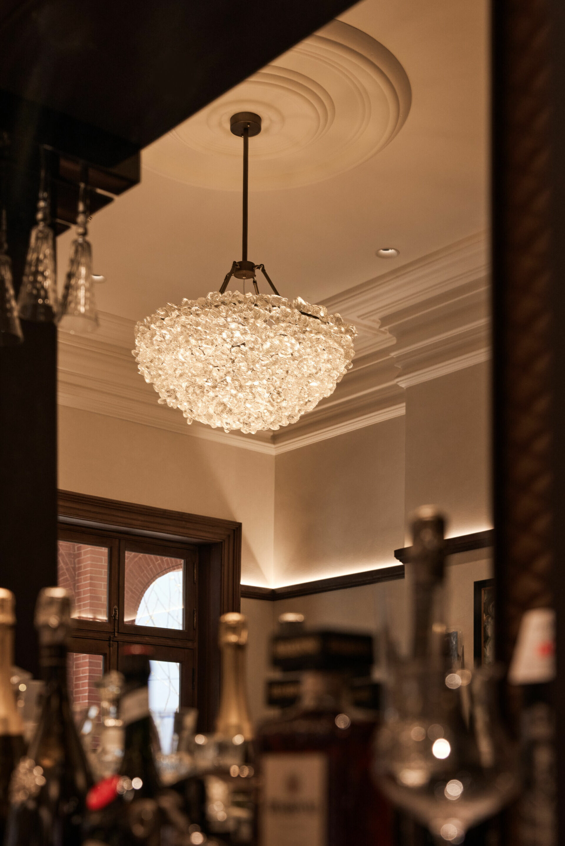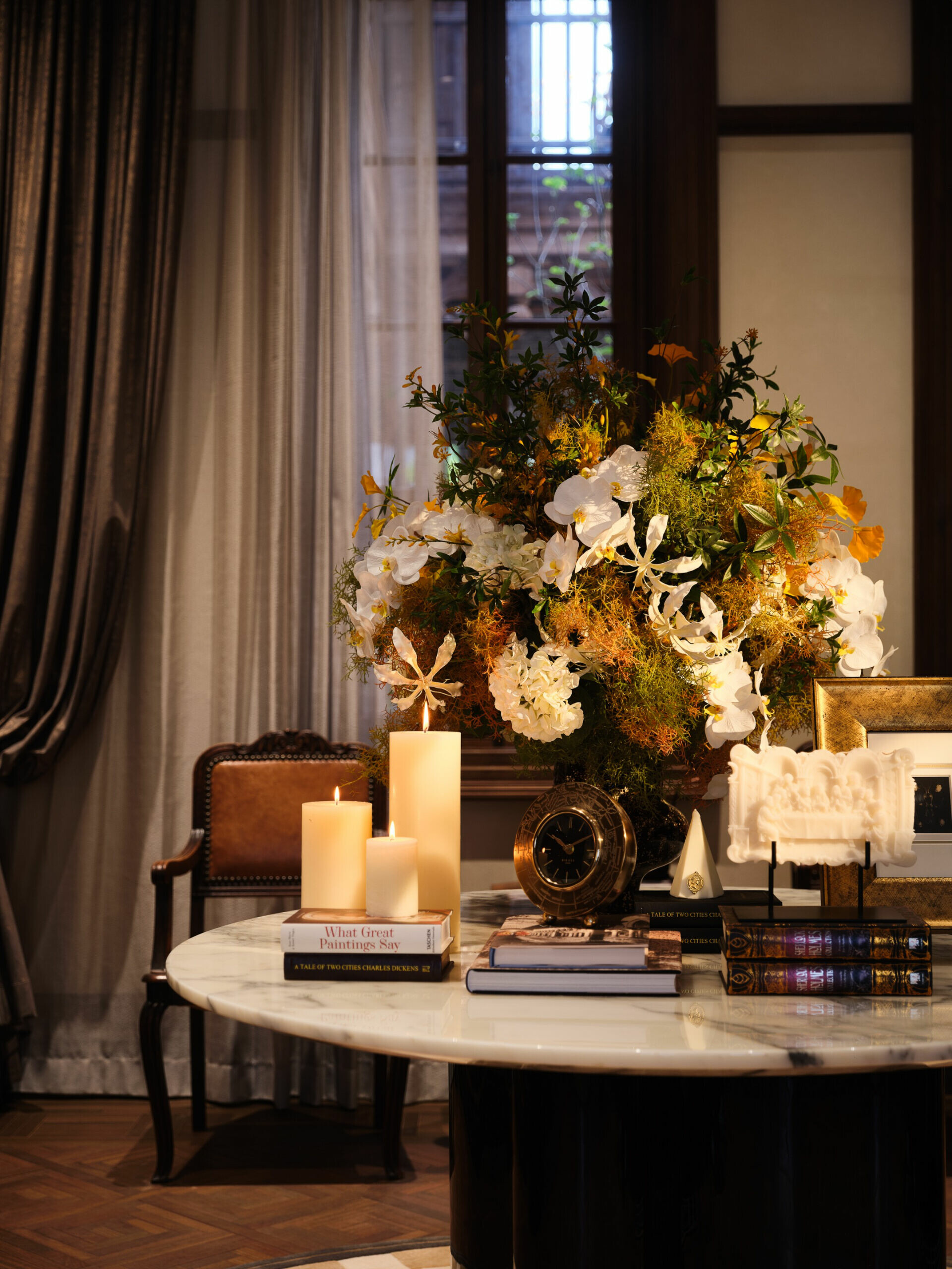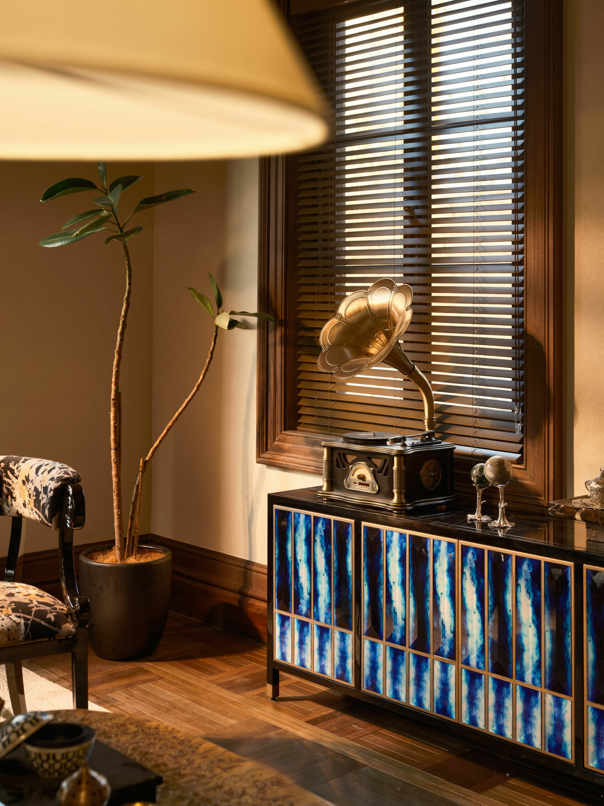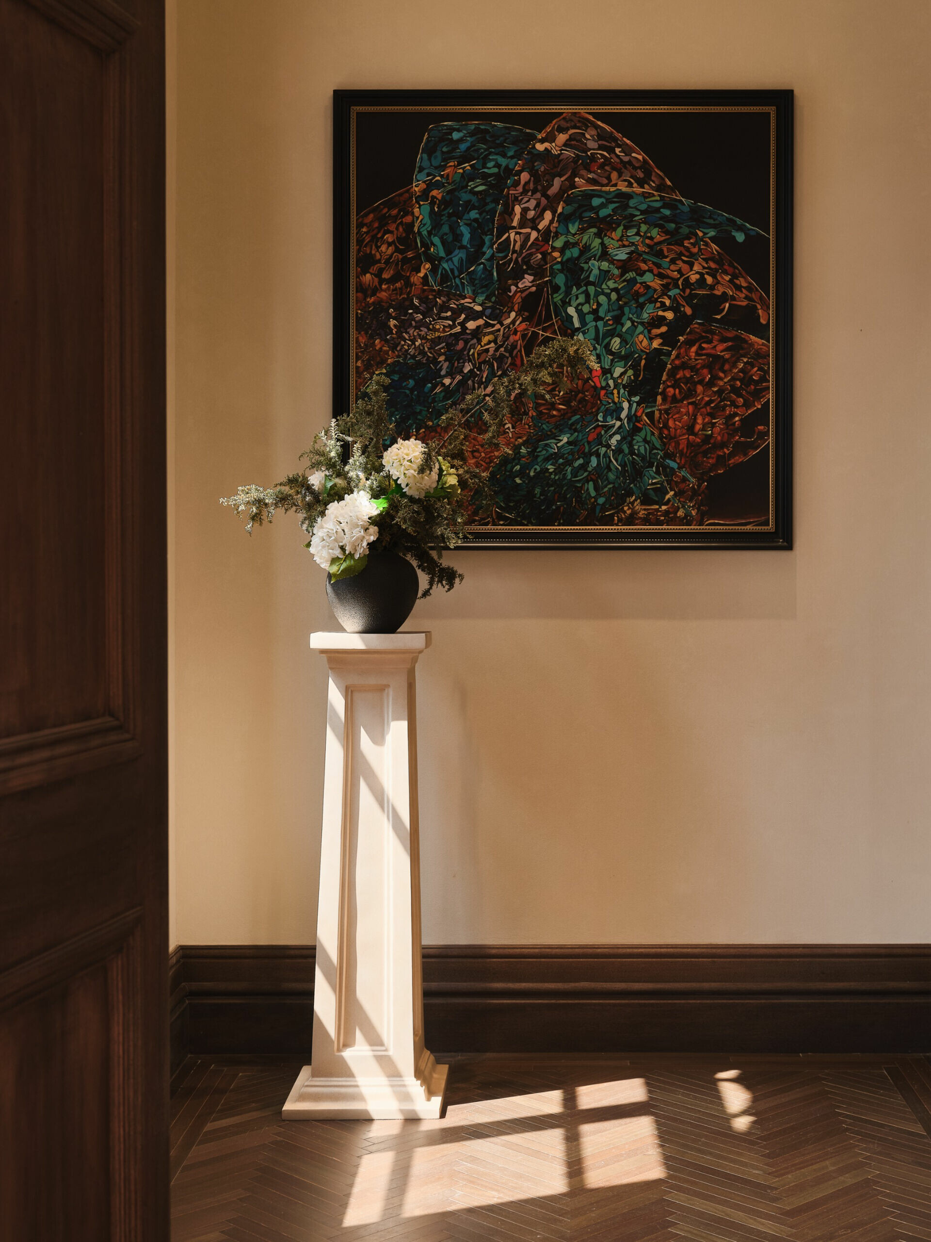 在色彩與材質的選擇上,設計不追求過多裝飾,而是以「低調、高質」為調性,使老宅的沉穩、木材的溫度與光影的柔和交織,形成一種含蓄卻深刻的美學。譬如水吧區選用深色木飾面配合柔和燈光,將典雅與靜謐相融;展陳空間則把歷史氛圍作為底層語彙,與當代藝術裝置共構一個跨越時代的敘事場景。在這裡,歷史不是背景,而是參與者;空間不是容器,而是對話者。