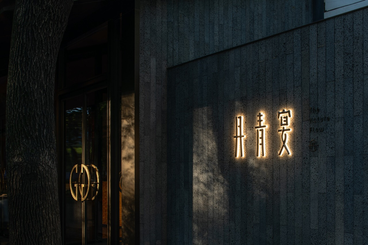 應階而登高處,又見青色,在朱砂色包裹的暖色光暈中,青石板鋪就的道路似緩緩道來那些過去的故事,每一個包廂都裝點著你耳畔每一個不同的述說,或是文氣雅致的,或是煙火濃郁的,亦或是溫馨可愛的。是天青色煙雨裡,大面積窗景旁的等待,也是豪情江畔的眺望未來,江景透過玻璃映襯出你的身影;是暖色木面牆前,圍坐在桌邊的歡欣相聚,紅色的紗布圍裹住你的溫暖感動。